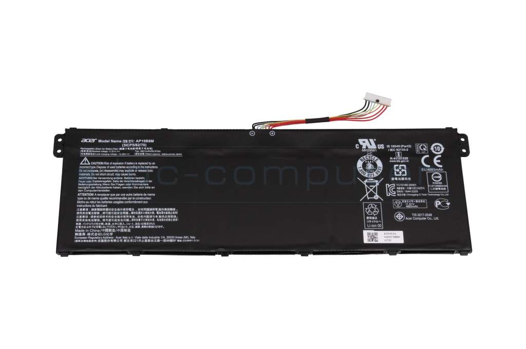 Type AP19B8M – Different batteries are installed in the notebook model series SF314-43 / SF314-511 depending on the configuration of the device. - A different type designation can lead to compatibility problems, which means that these batteries may not be recognized or charged in your device.
