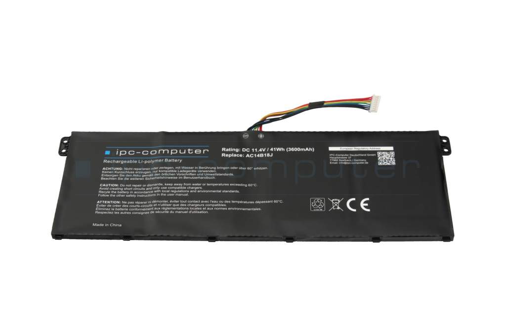 IPC-Computer battery 41Wh 11.4V (AC14B18J) suitable for Acer Extensa 215 (EX215-51G)