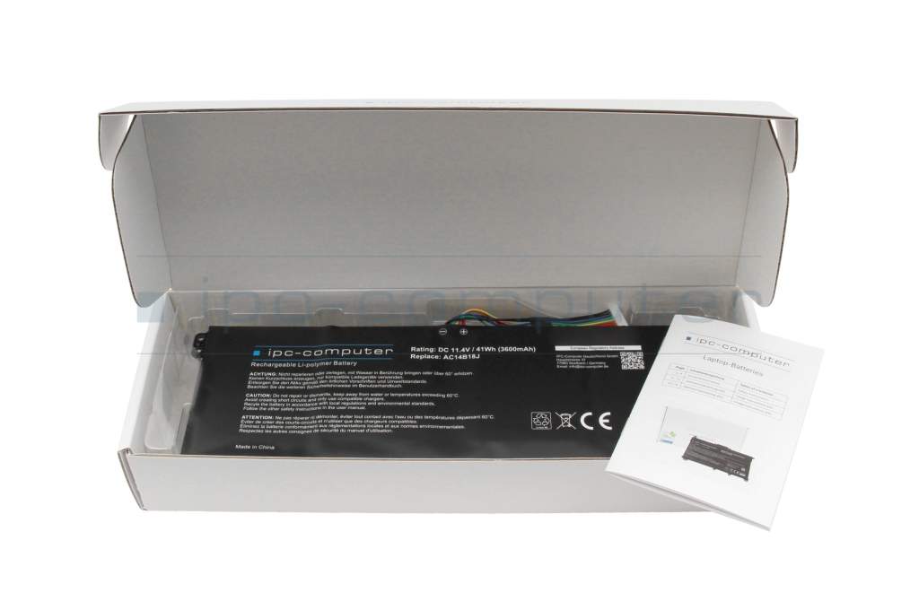Please compare the voltage specification (11.4V) and type designation (AC14B18J) of this battery with the specification of your battery! Compatibility is not guaranteed if there is a discrepancy.