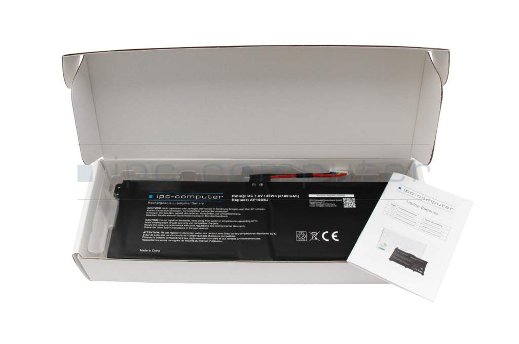 Please compare the voltage specification (7.6V) and type designation (AP16M5J) of this battery with the specification of your battery! Compatibility is not guaranteed if there is a discrepancy.