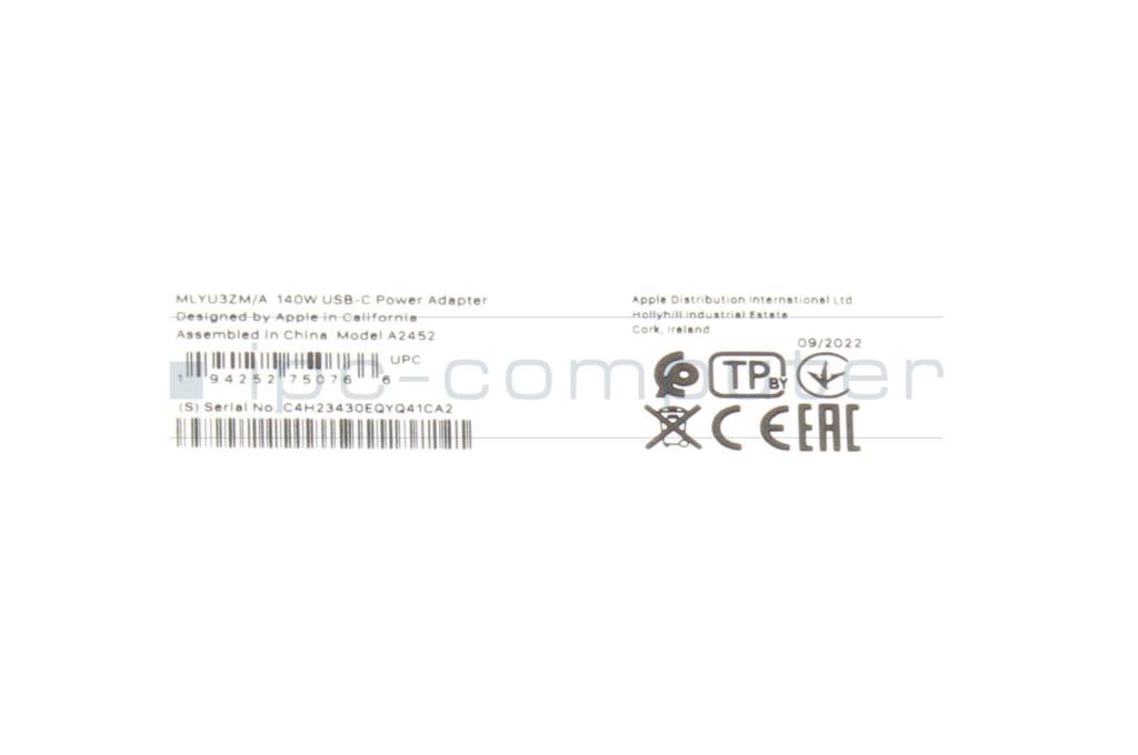 Apple MacBook Pro M3 (16" 2023) A2991 original USB-C GaN-AC-adapter 140.0 Watt white