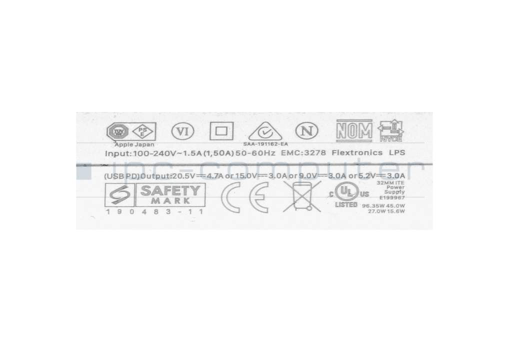 Apple MacBook Pro M3 (16" 2023) A2991 original USB-C AC-adapter 96.0 Watt EU Wallplug white
