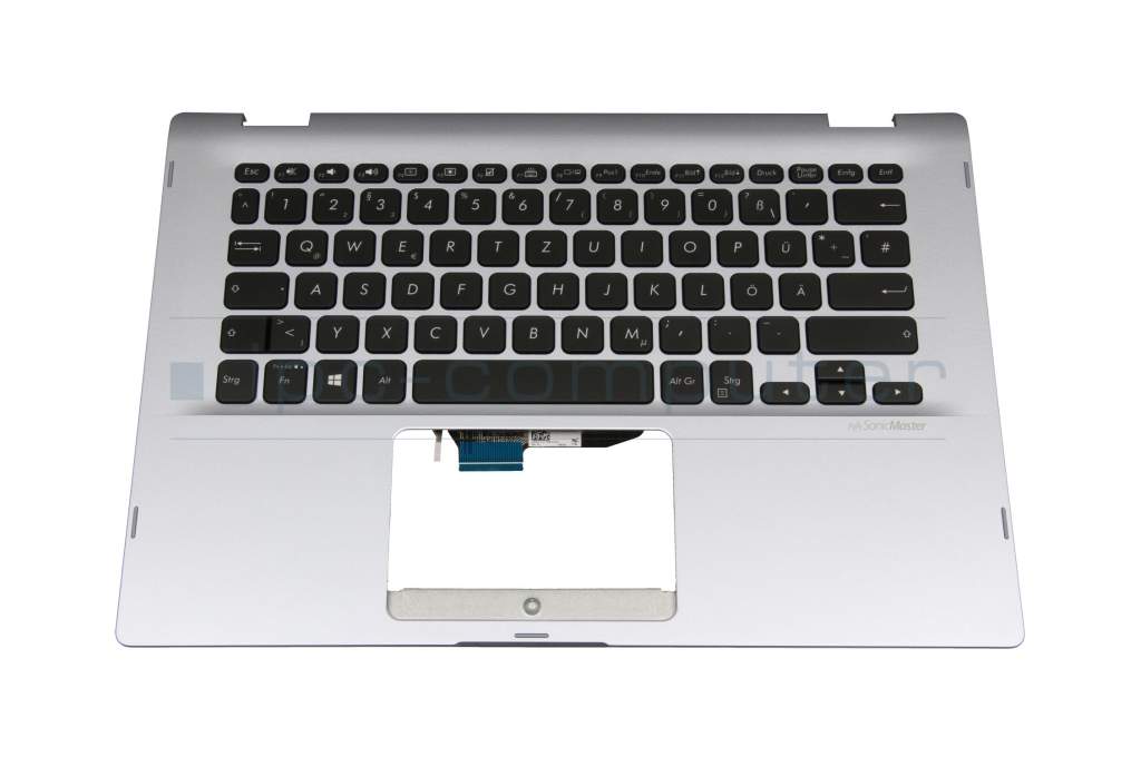 Keyboard incl. topcase DE (german) black/silver with backlight original suitable for Asus VivoBook Flip 14 TP412FA