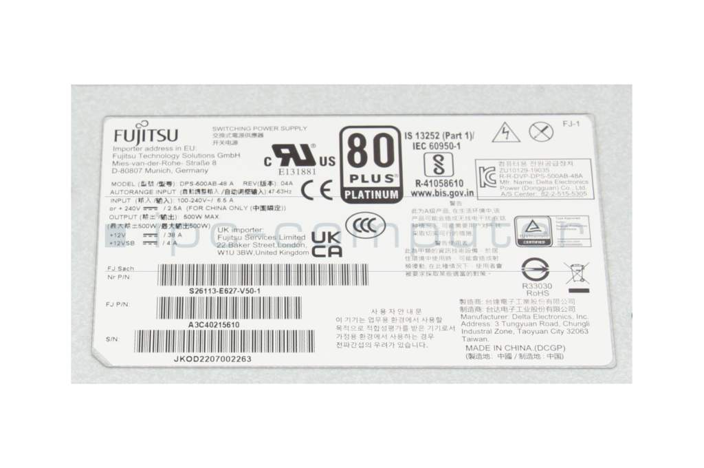 Server power supply 500 Watt original for Fujitsu Primergy RX2530 M7