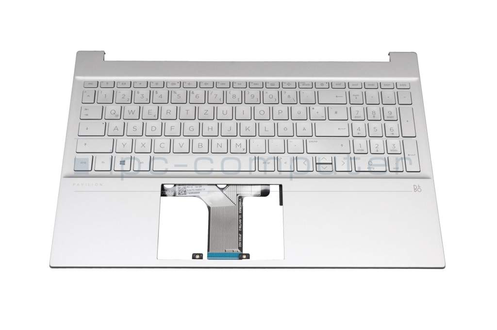 Keyboard incl. topcase DE (german) silver/silver with backlight original suitable for HP Pavilion 15-eh1000