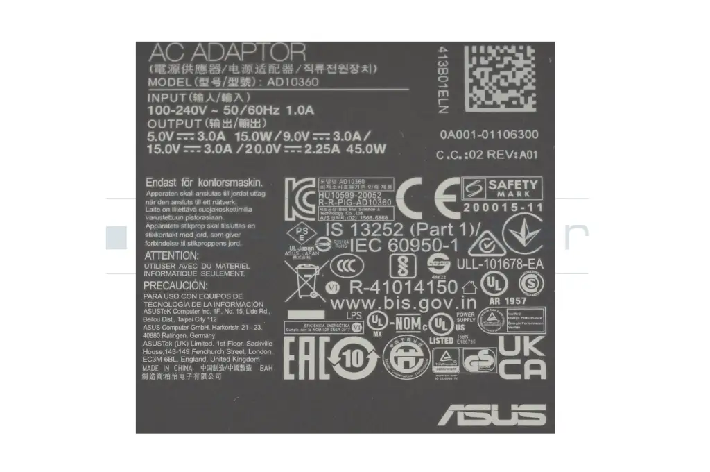 0A001-00694000 original Asus USB-C AC-adapter 45.0 Watt