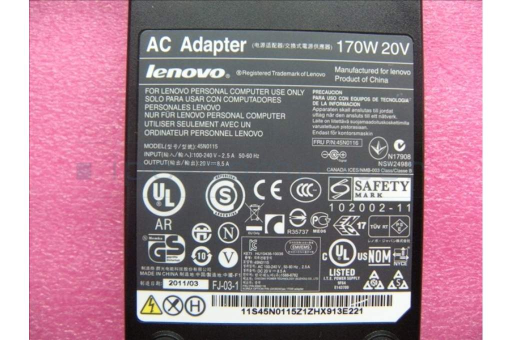 Lenovo 45N0116 ADAPTR CHICONY SLIM 170W 3pin