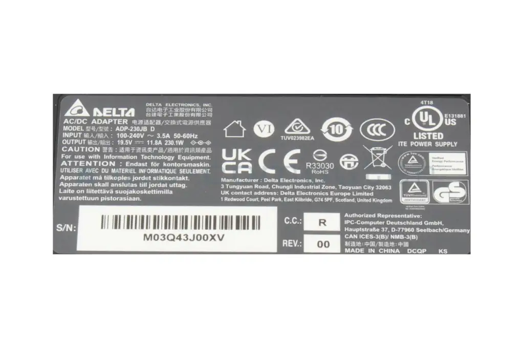 ADP-230JB DR original Delta Electronics AC-adapter 230.0 Watt