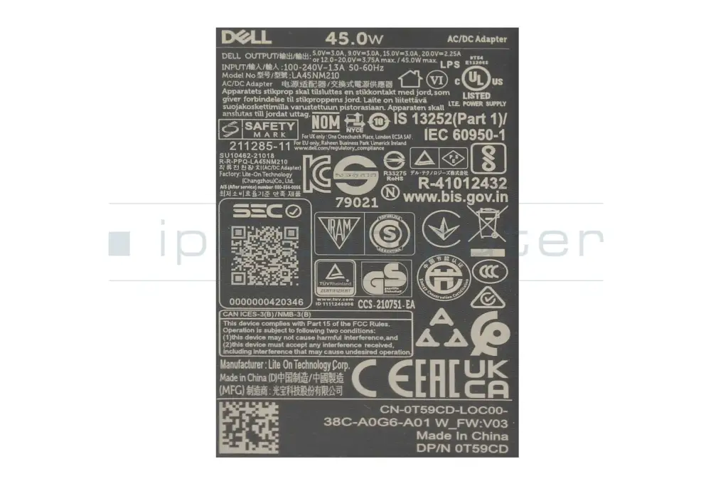 CN-0T59CD original Dell USB-C GaN-AC-adapter 45.0 Watt small Small Slim