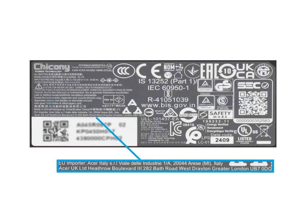 You can recognize an original Acer power supply by these features