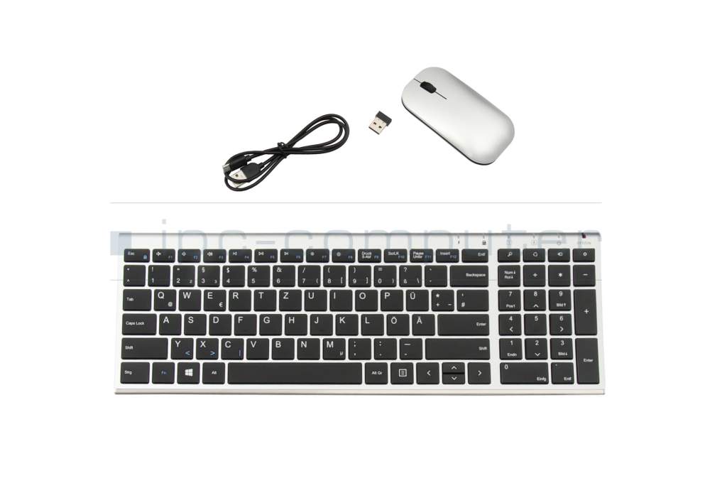 Discover the wireless keyboard (DE) and mouse set in an elegant metal look - the perfect combination of style and functionality for your home or office.