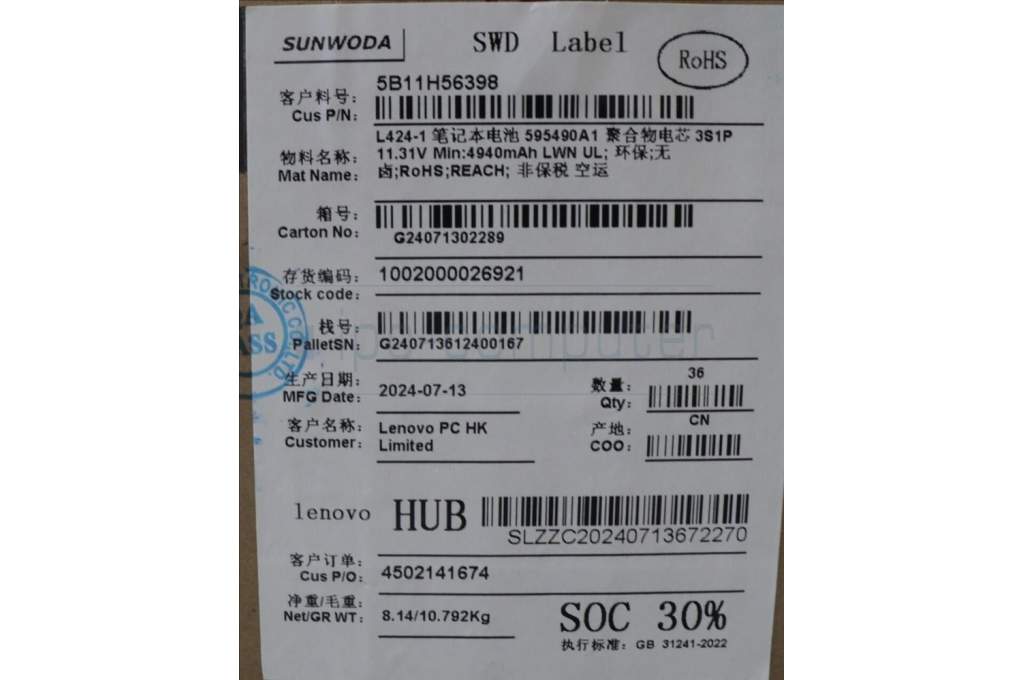 Lenovo 5B11H56398 BATTERY Internal, 3c 57Wh, LiIon, SWD