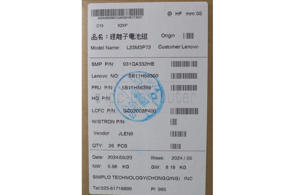 Lenovo 5B11H56399 BATTERY Internal, 3c 57Wh, LiIon, SMP