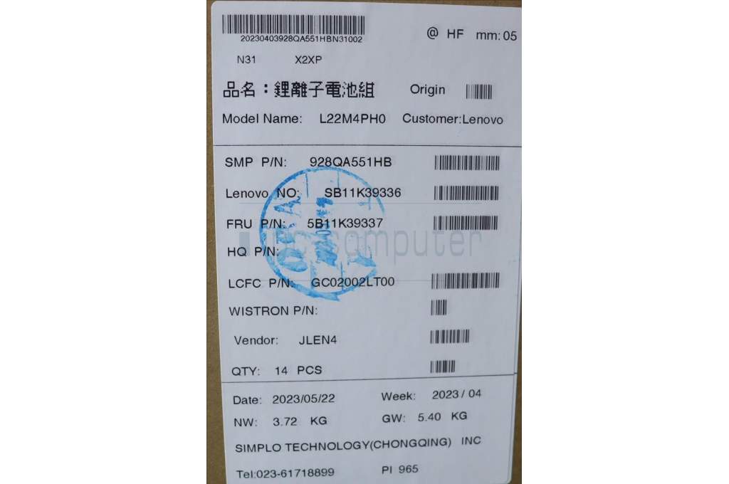 Lenovo 5B11K39337 BATTERY 4cell 80Wh 7.8V L22M4PH0 SP/A