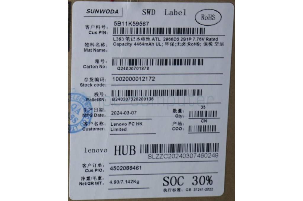 Lenovo 5B11K59567 BATTERY 2cell 35.6Wh 7.76V L22D2PH1 SD/A