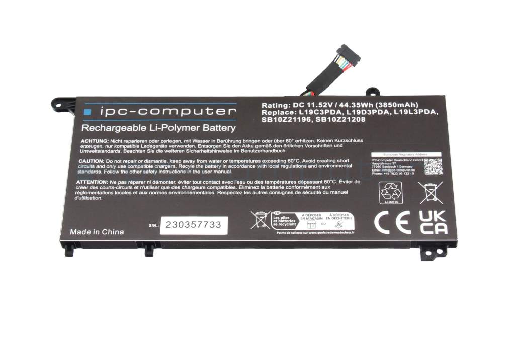 IPC-Computer battery 3 cell compatible to Lenovo SB10Z21196 with 44.35Wh