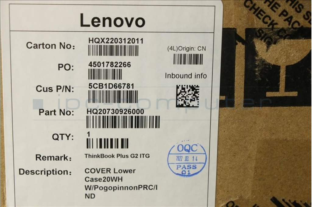 Lenovo 5CB1D66781 COVER Lower Case20WH W/PogopinnonPRC/IND
