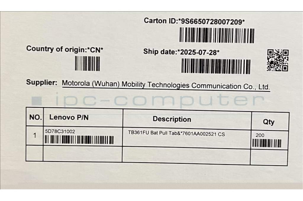 Lenovo 5D78C31002 TB361FU Bat Pull Tab&*7601AA002521 CS