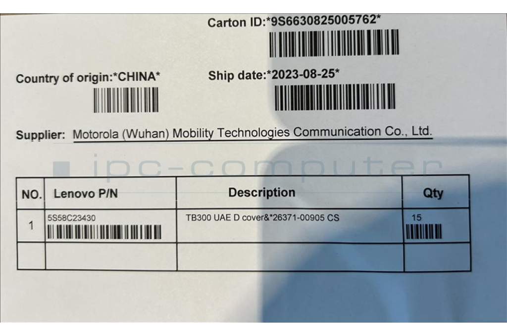 Lenovo 5S58C23430 TB300 UAE D cover&*26371-00905 CS