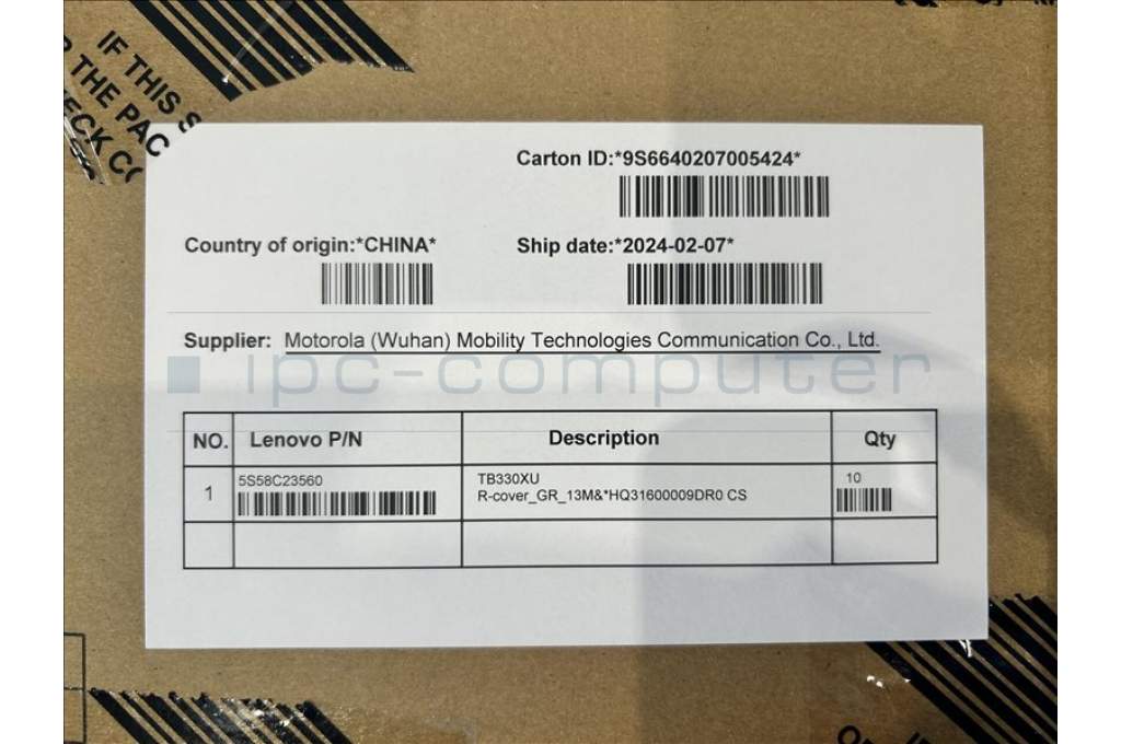 Lenovo 5S58C23560 TB330XU R-cover_GR_13M&*HQ31600009DR0 CS