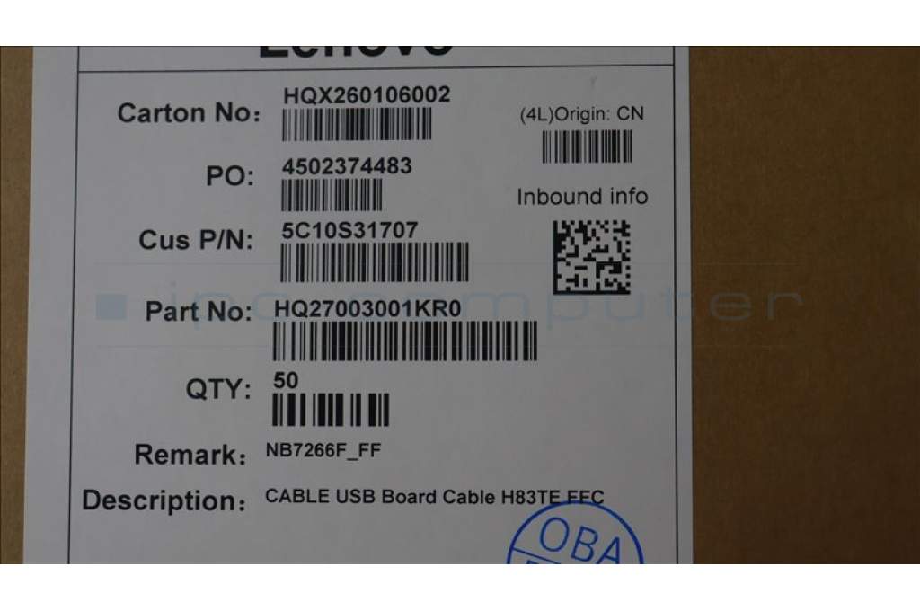 Lenovo 5C10S31707 CABLE USB Board Cable H83TE FFC