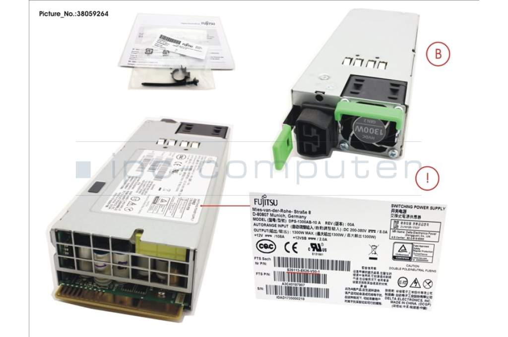 Fujitsu S26113-F626-L10 MODULAR PSU DC 380V 1300W PLATINUM HP