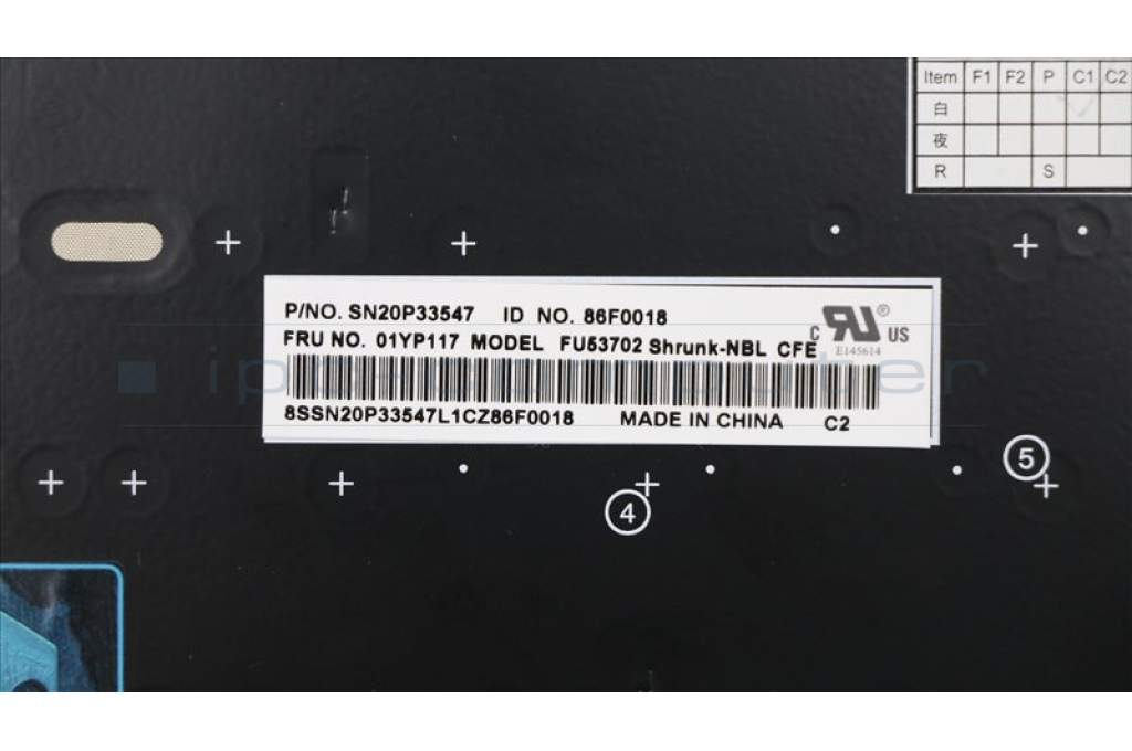 Lenovo 01YP117 NB_KYB FRU COMO SK,LTN,KB,BK,CFE