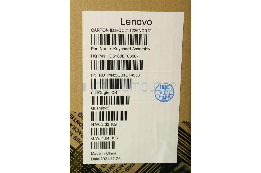 Lenovo 5CB1C74958 COVER Upper Case ASM_SWS H82L5CLOUMA