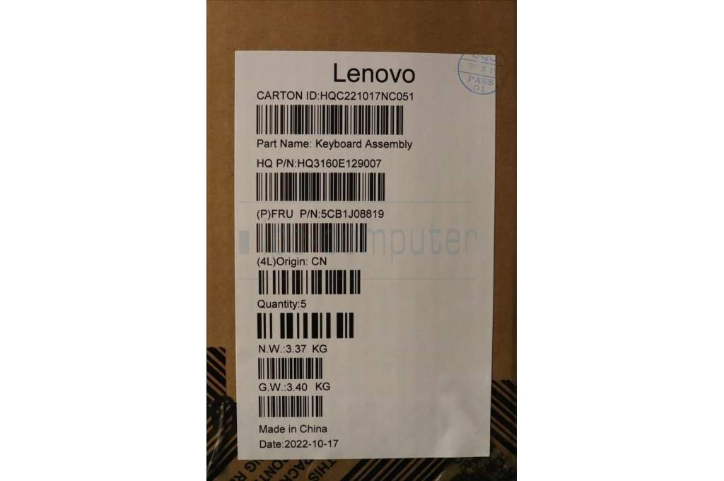 Lenovo 5CB1J08819 COVER Upper Case ASM_EURO ENG H STGY DIS
