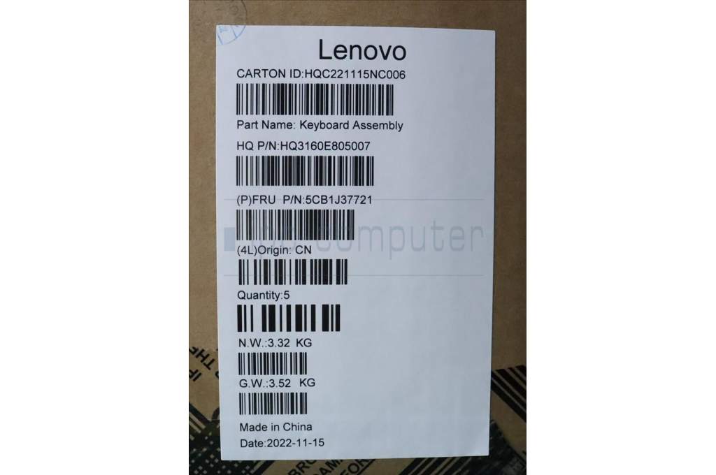 Lenovo 5CB1J37721 COVER Upper Case ASM_UKE H 82VA GY