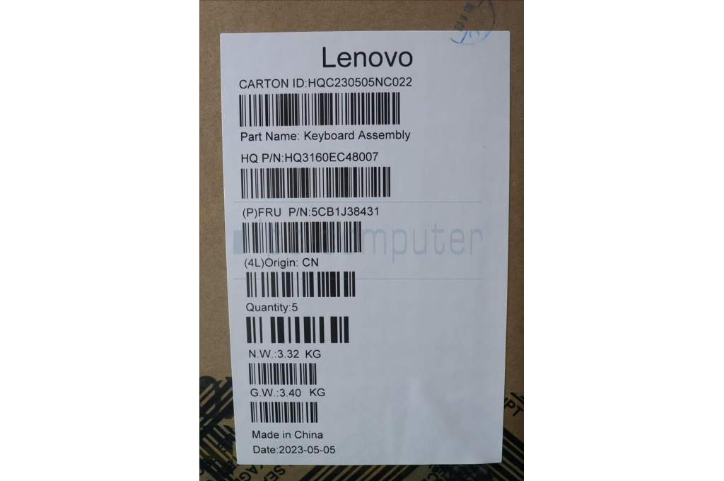 Lenovo 5CB1J38431 COVER Upper Case ASM_BEL H 82UW I VGA