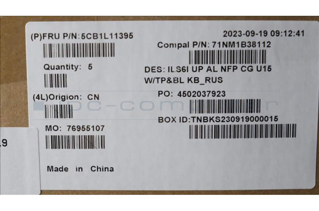 Lenovo 5CB1L11395 COVER UpperCase_RUS C82XF NFP CG BL AL