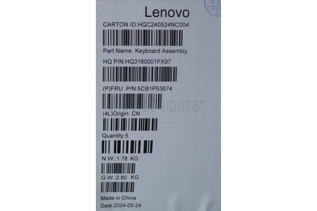 Lenovo 5CB1P53674 COVER UpperCaseASM THAI H83E2 TT PST DIS
