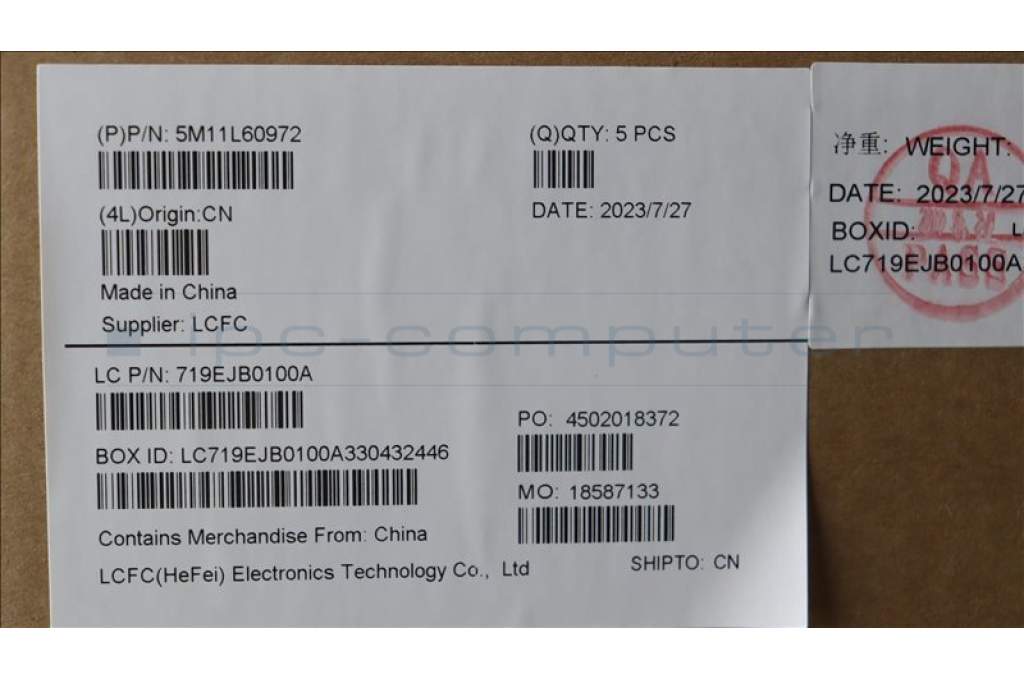 Lenovo 5M11L60972 MECH_ASM FRU KB CCV ENG US (SRX) AG