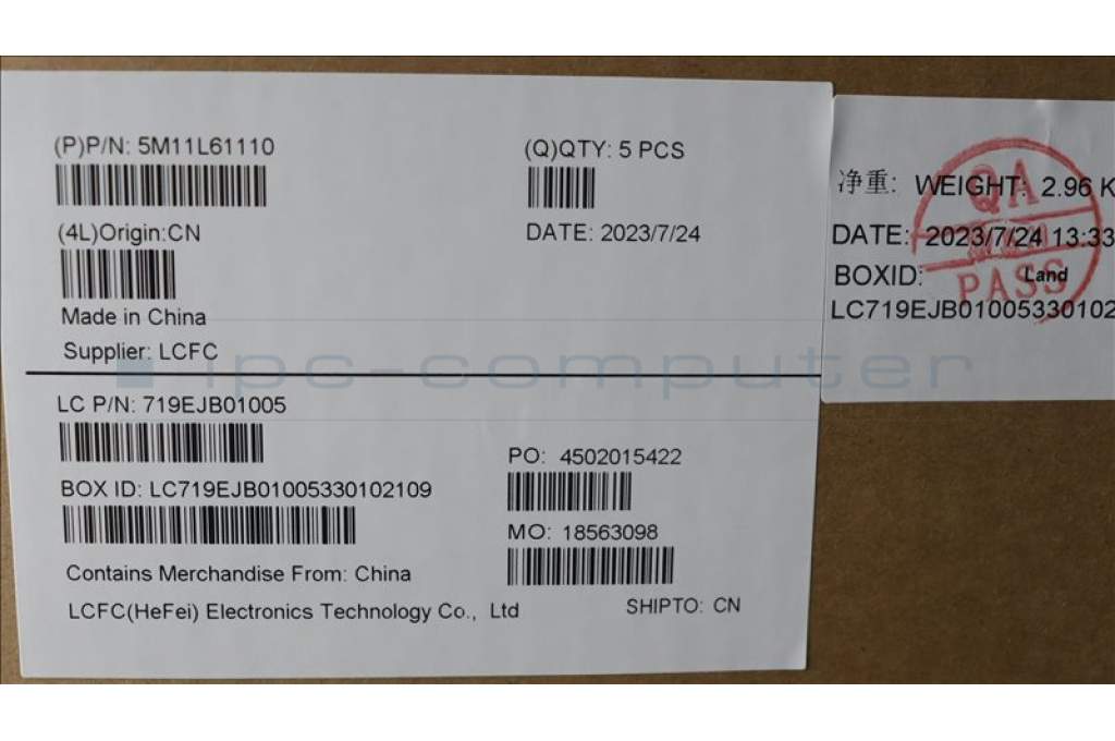 Lenovo 5M11L61110 MECH_ASM FRU KB CCV ENG US BL (CHY) AG
