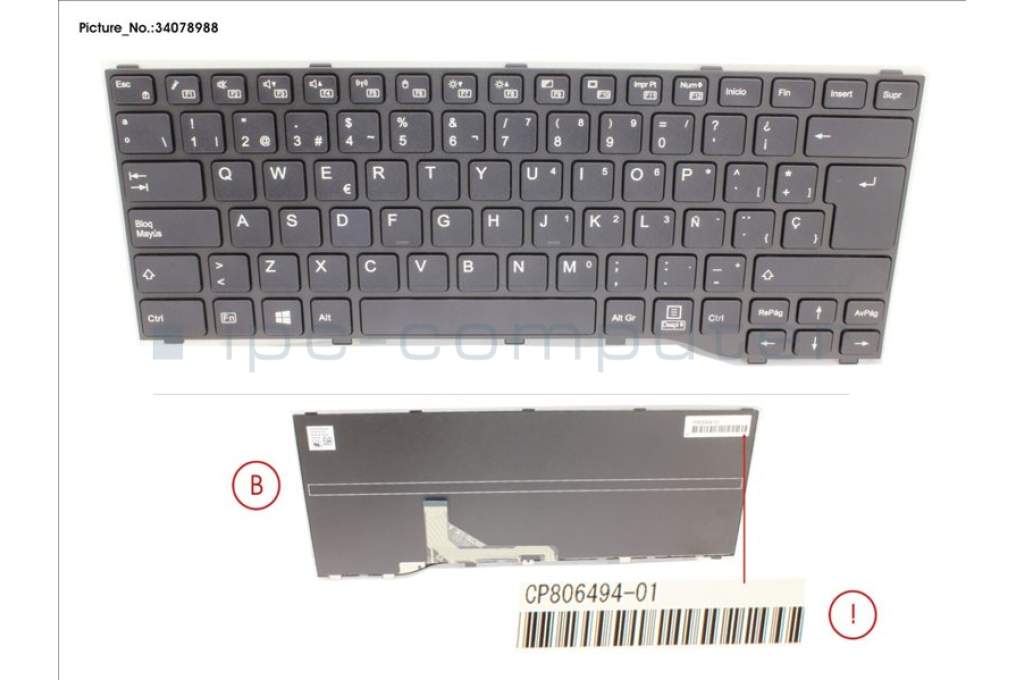Fujitsu CP806494-XX KEYBOARD BLACK SPAIN WIN10