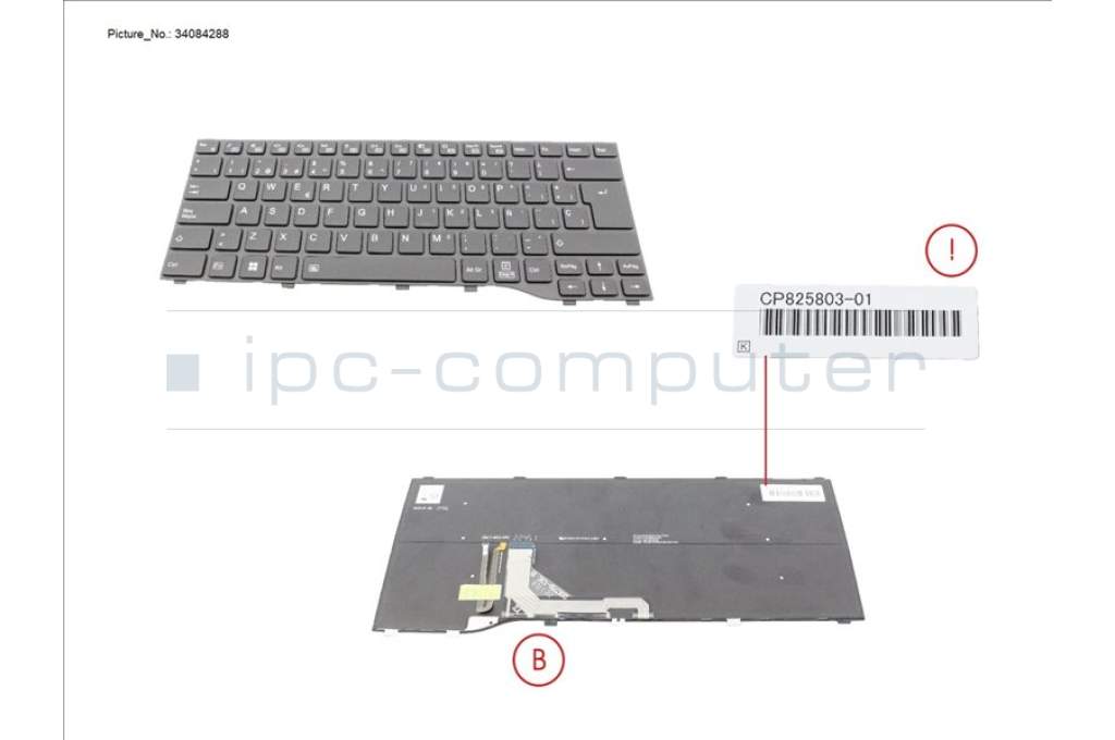 Fujitsu CP825803-XX KEYBOARD BLACK W/ BL SPAIN WIN11