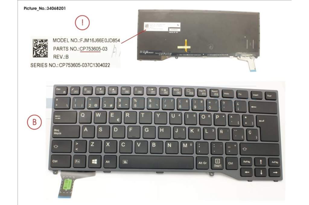 Fujitsu FUJ:CP753605-XX KEYBOARD SPAIN W/ BL