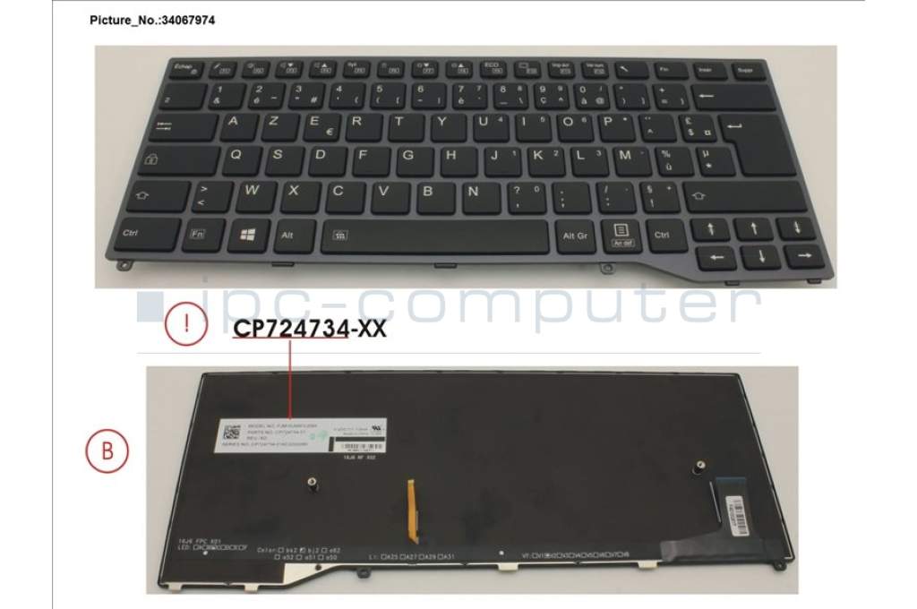 Fujitsu FUJ:CP758506-XX KEYBOARD BLACK W/ BL FRANCE