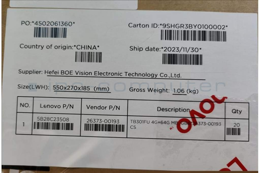 Lenovo 5B28C23508 TB301FU 4G+64G MB_GB&*26373-00193 CS