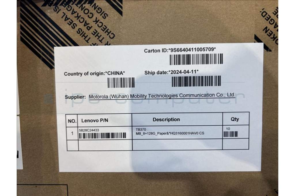 Lenovo 5B28C24433 TB370 MB_8+128G_Paper&*HQ3160001HAV0 CS