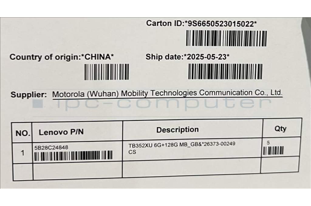 Lenovo 5B28C24848 TB352XU 6G+128G MB_GB&*26373-00249 CS