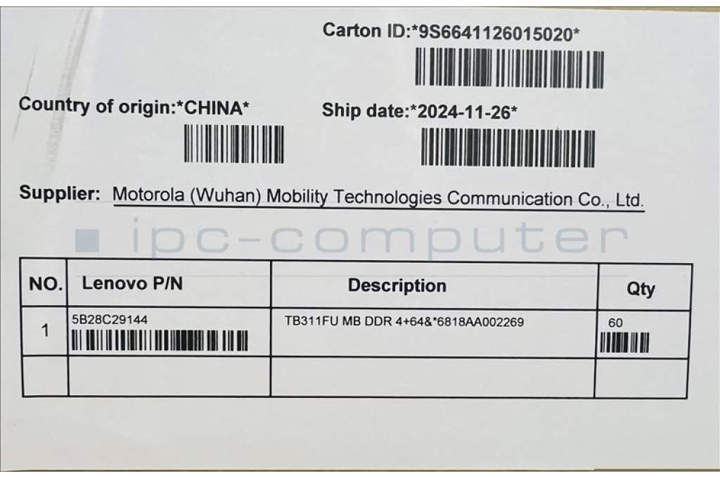 Lenovo 5B28C29144 TB311FU MB DDR 4+64&*6818AA002269