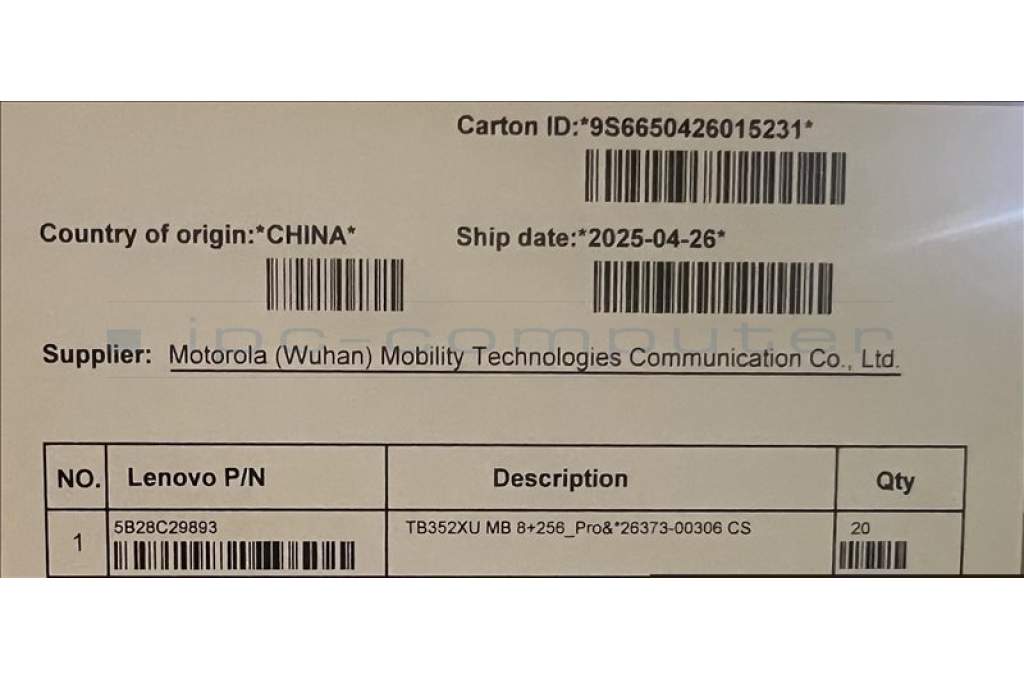 Lenovo 5B28C29893 TB352XU MB 8+256_Pro&*26373-00306 CS
