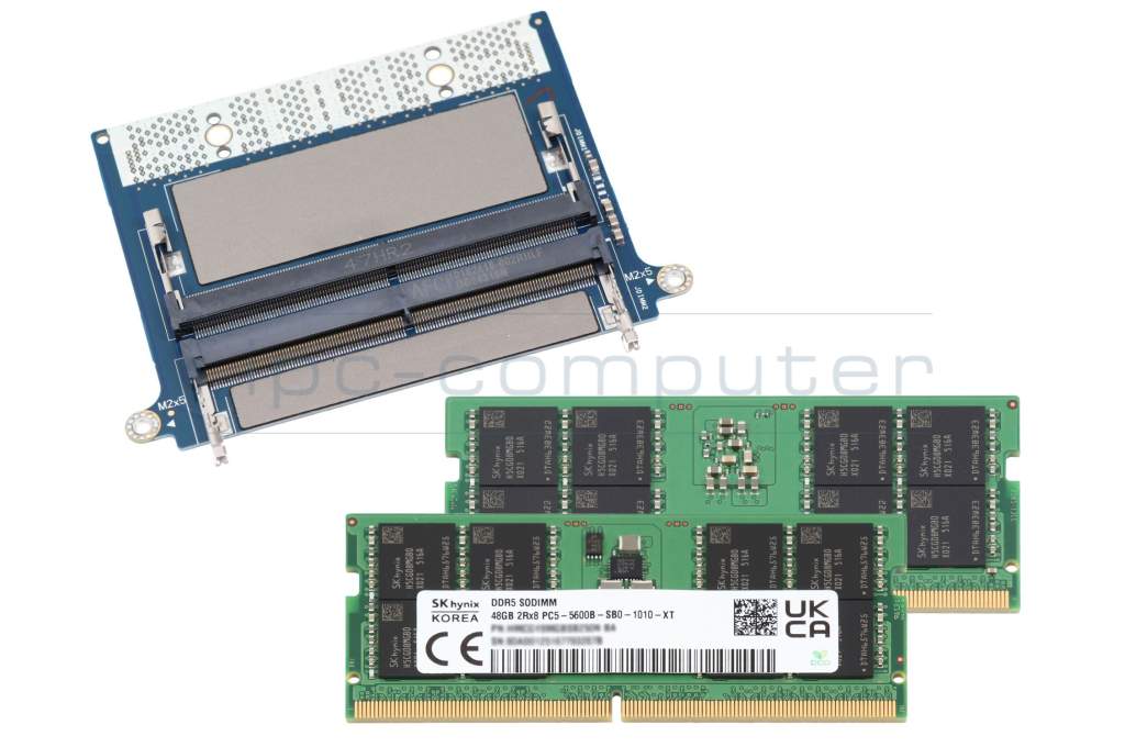 Installation is straightforward: simply remove the back cover of your laptop and replace your previous CAMM module with this adapter and fit it with the two DDR5 SO-DIMM RAMs supplied. You will find step-by-step instructions in the service manual for your system.