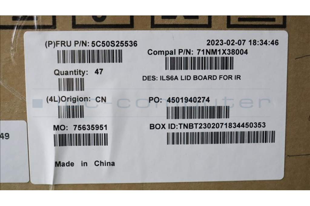 Lenovo 5C50S25536 CARDPOP LID board C 82XG IR