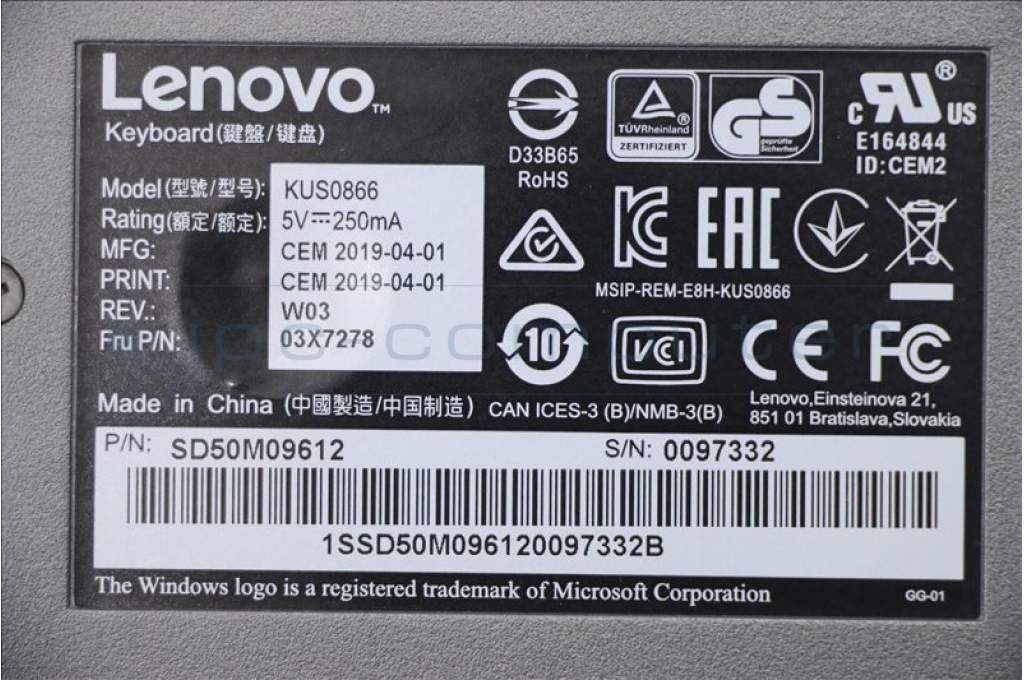 Lenovo 03X7278 KB MICE_BO SmartCard KB-US English