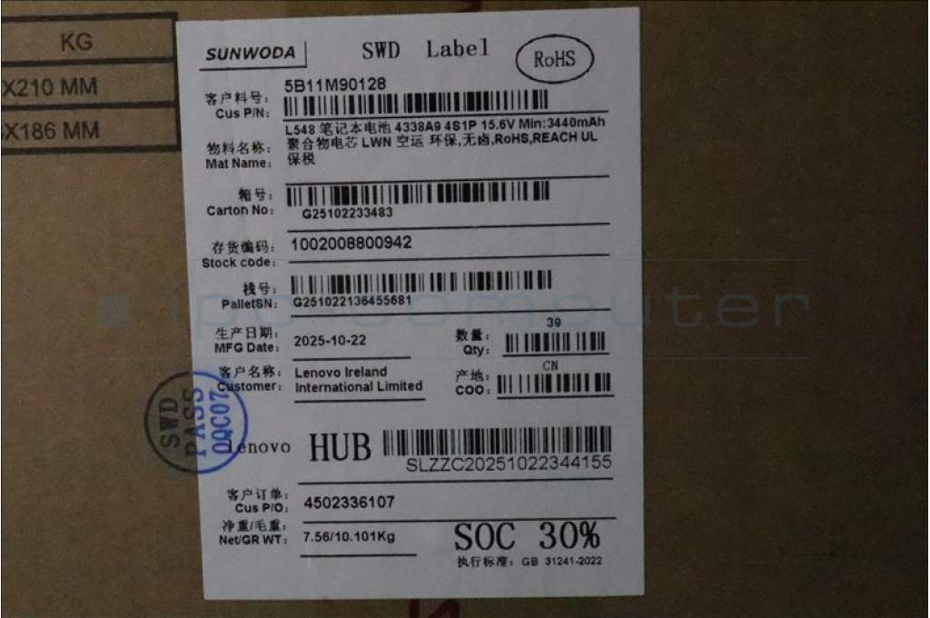 Lenovo 5B11M90128 BATTERY Internal, 4c 54.7Wh, LiIon, SWD