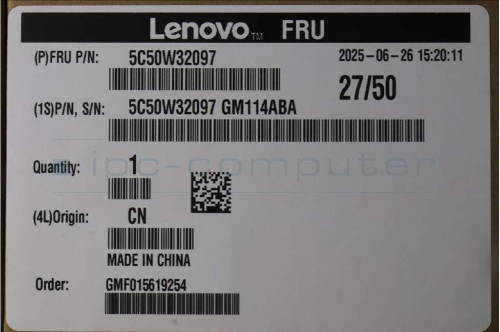 Lenovo 5C50W32097 CARDPOP BLD Tiny11 BTB Type-c 100W Card