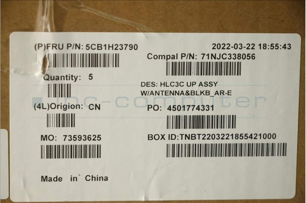 Lenovo 5CB1H23790 C-Cover with keyboard, Arabic, Backlight, US